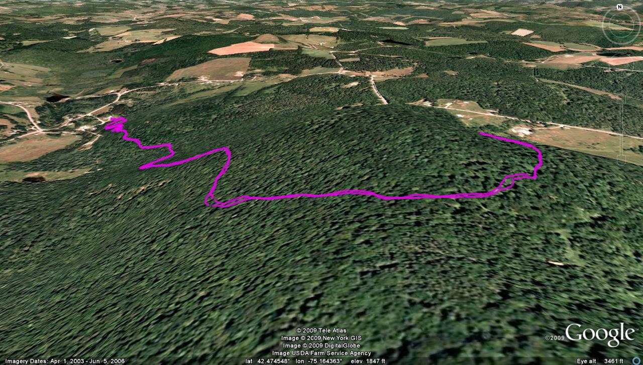 On Tuesday while we were at Cooperstown, I ran on the trails outside the house that we were renting. Although the trails were very wet from all of the rain, I had a great run. I came across deer and wild turkeys. In less than 1.5 miles, the trail climbed almost 500 feet to the top of the ridge, including two particularly steep sections. Although a fairly short run, my legs were sore for a week afterward.
